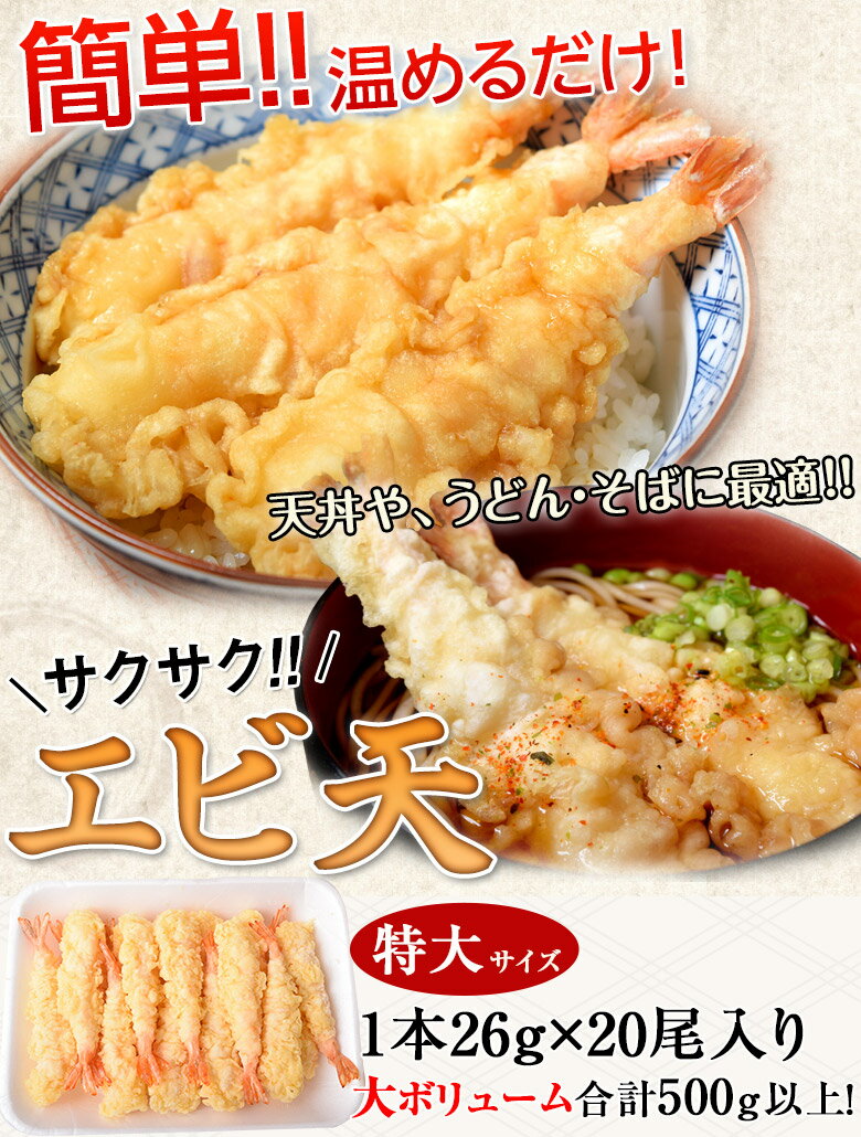 えび エビ 海老 特大 えび天 26g×20尾入り 天ぷら 海老天 エビ天 うどん 蕎麦 丼もの 冷凍同梱可能